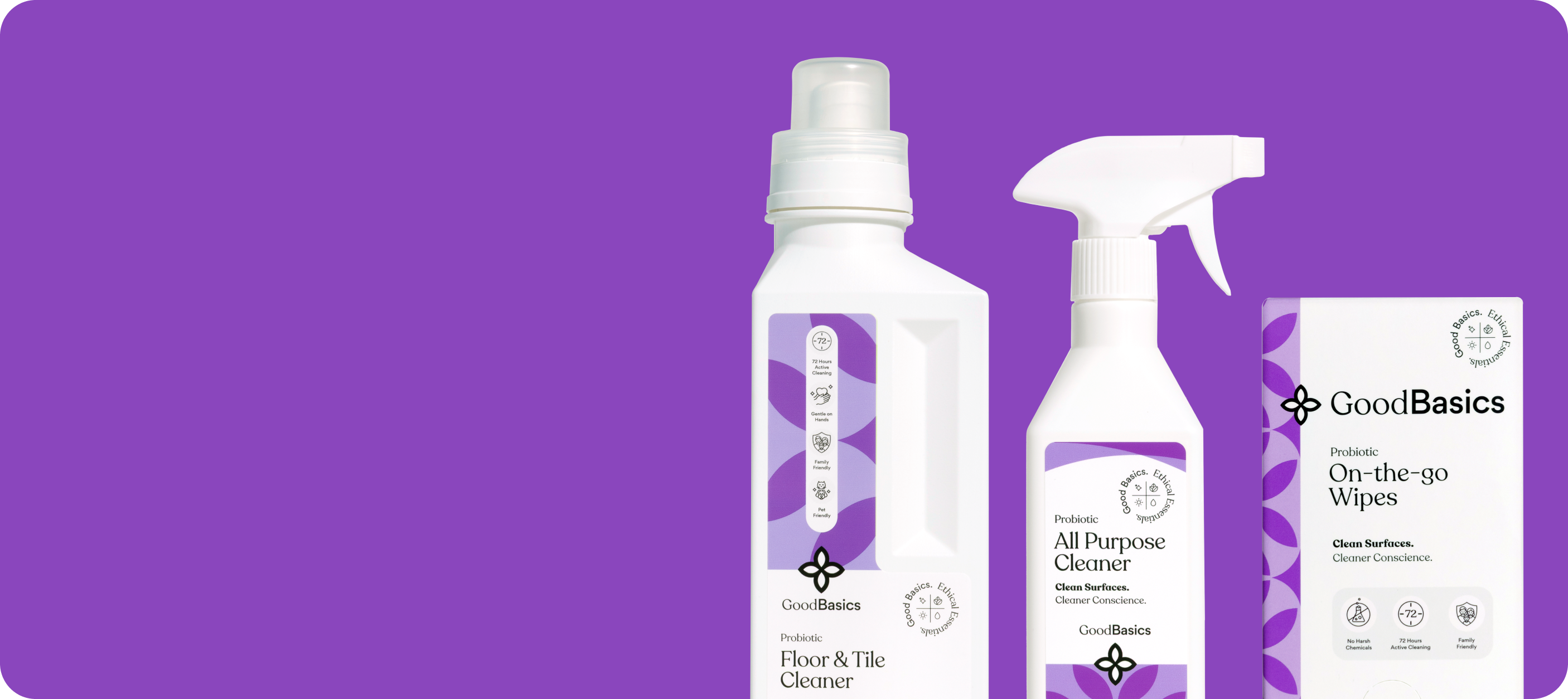 Chemical cleaners strip away all bacteria, good and bad, leaving space for tougher germs to return. Our good-natured essentials work smarter: adding beneficial bacteria with Microbiome Support™ that keep protecting for up to 72 hours while supporting your home’s natural defences.