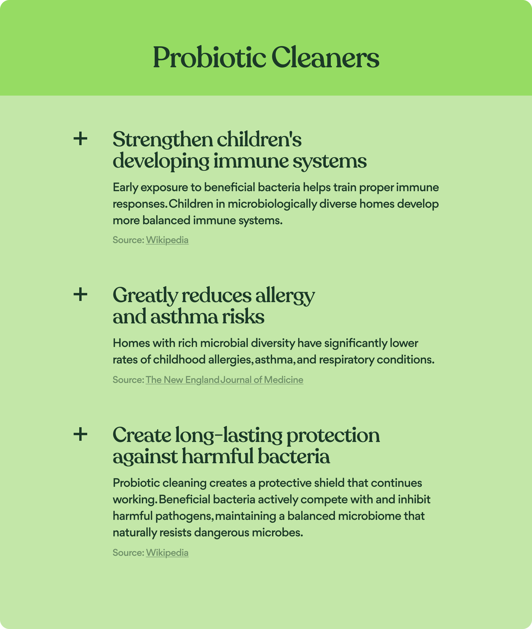Probiotic cleaning replaces the 'kill everything' approach with something smarter - beneficial bacteria that clean, protect, and keep working for days.